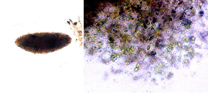 図1-2 ヒメタニシのフン(左)とその拡大(右)