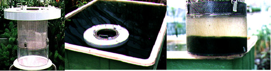 原理はいたって単純で、マキガイが濾過捕食した単細胞藻類のフンを容器でトラップするものである。