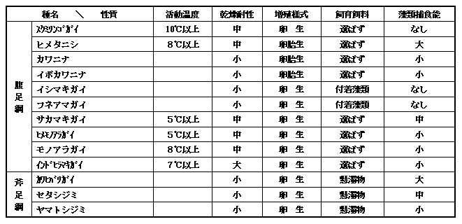 表3-1 供試貝類の性質