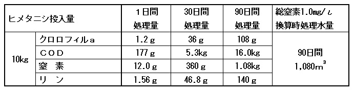 した除去量は8000mg・ch1-a/weekであり、ヒメ夕ニシ10kgに換算した1日当たりの植物プランクトン量はクロロフ