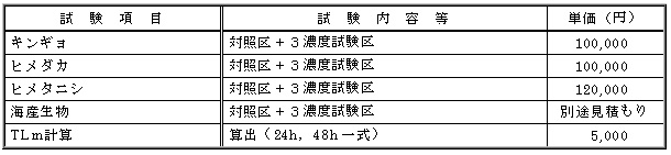 水生生物による毒性試験です。結果として24時間及び48時間の半数致死濃度が求められます。