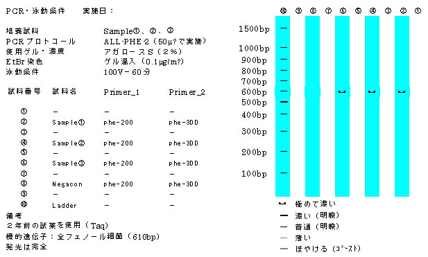 Phe-1、PHE-3プライマーペアー・・・・・・・・670bp