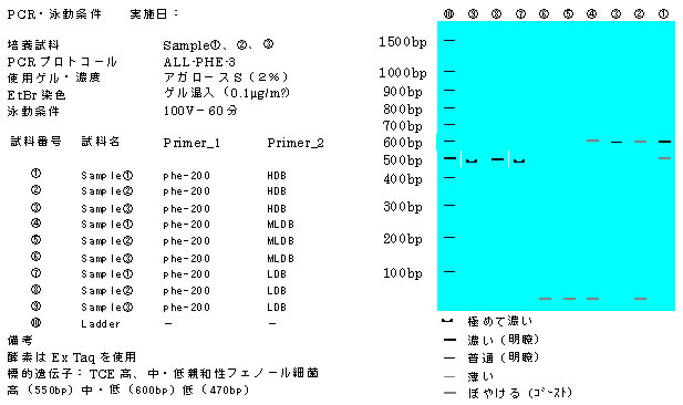 以上の結果およびその後の試験結果より、全フェノール資化性細菌の検出にはEx Taq酵素を用いたALL-PHE-2のプロトコール