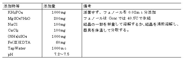 表4−1 フェノール利用細菌保存培地(生物工学研)