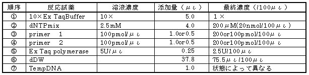 これまでの検討結果に従って抽出遺伝子をPCRにかけた。