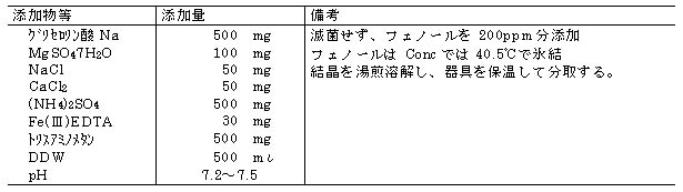 ける目的で有機塩によって培地を再構成した。この組成では培地調製時の沈殿は起きなくなった。