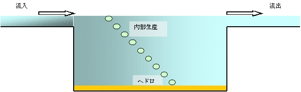 流入部からもたらされる汚濁負荷が貯水部内で変化し、その一部が放流水となって系外へ出て行
