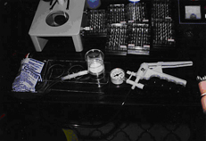 (左から分離器具、同、試験管増殖試験、クローン培養、クローン細胞)