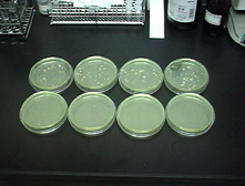 一方、炭素源をダルシトールとした場合、コロニーに発達は遅く、コロニー数は1/10程度に減少した。牧野孝宏(1993)によれば、炭素源をマンニトール