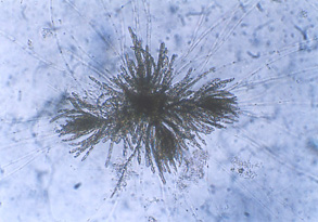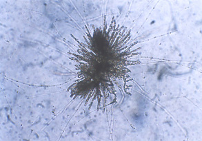 ●中性遊走子は直ちに付着し、モズク本体に生長します。